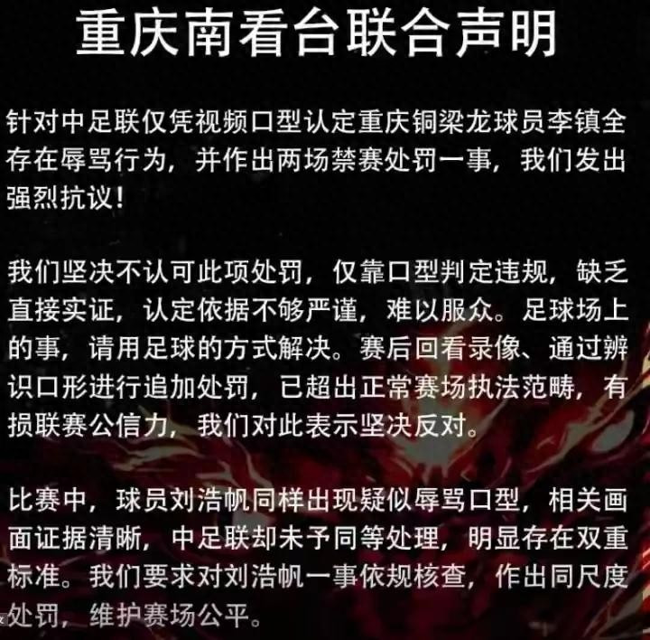 又处罚李镇全啦,两场,重庆铜梁龙球迷不干了。