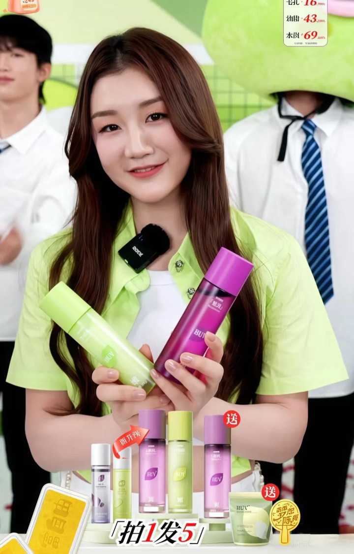陈梦直播带货, 荧光绿短上衣配白裤超亮眼长发微卷气质清新又貌美