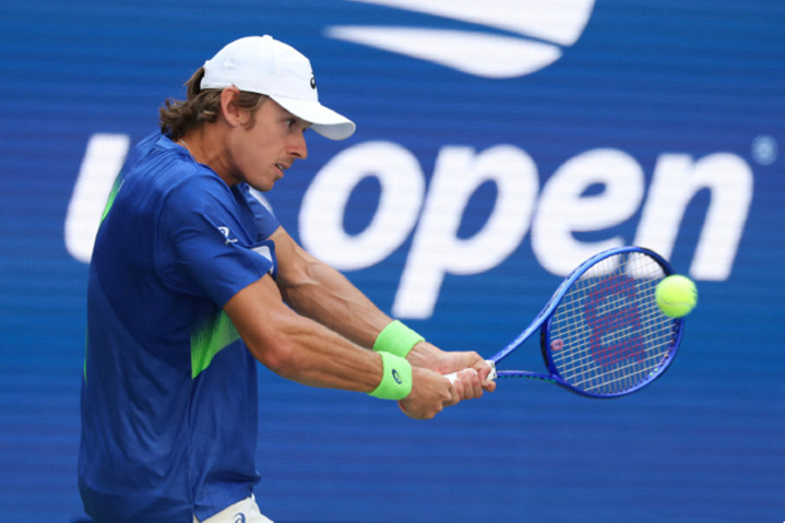 男单1/4决赛,25号种子加拿大的小小黑阿利亚西姆苦战4盘以4-6、7-6(7)、7-5、7-6(4)逆转8号种子德-米纳尔,继2021年之后再进美网4强,他将静候辛纳和穆塞蒂的胜者。