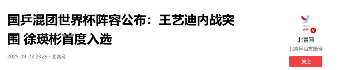 国乒混团世界杯阵容公布:王艺迪内战突围 徐瑛彬首度入选——北青网