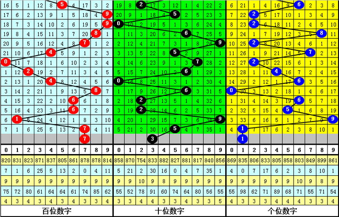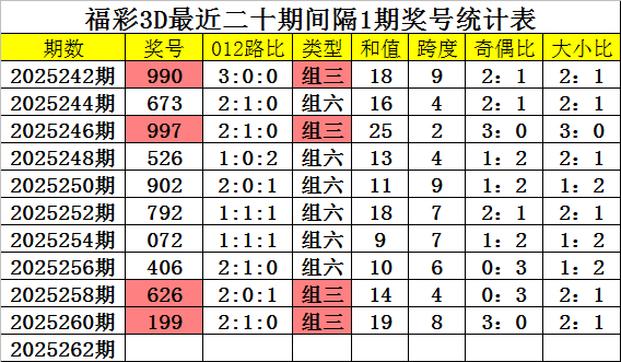 跨度分析:最近周一跨度出现范围在0-8区间,跨度比较集中,上周一跨度为4,跨度重复开出,本期看好跨度上升,参考跨度6。