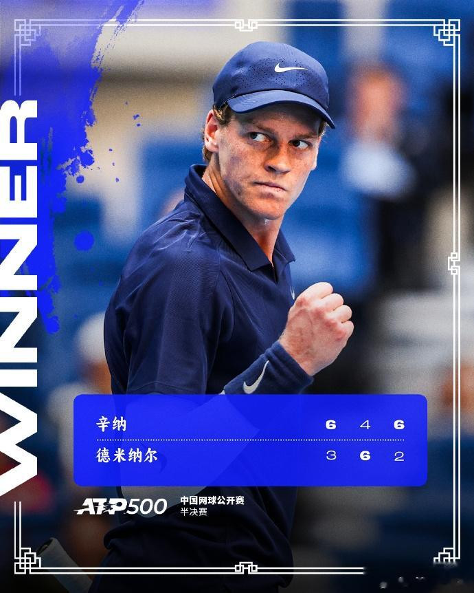 直播吧09月30日讯2025中网男单半决赛,辛纳2-1拿下德米纳尔,晋级决赛。